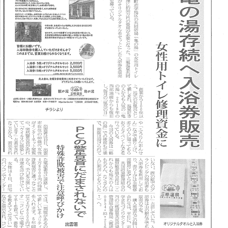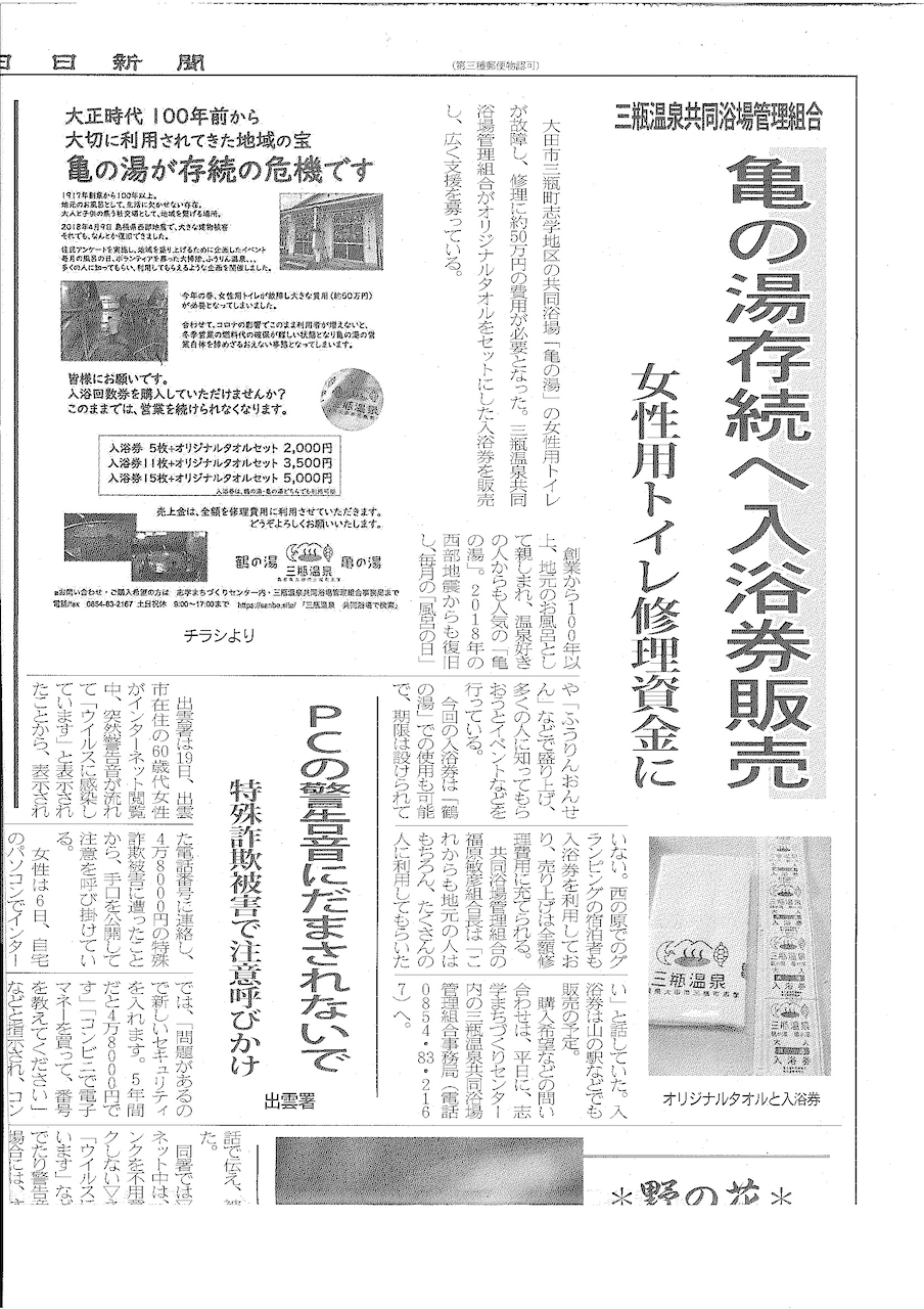 本日の山陰中央新報社に大きく記事を載せていただきました!