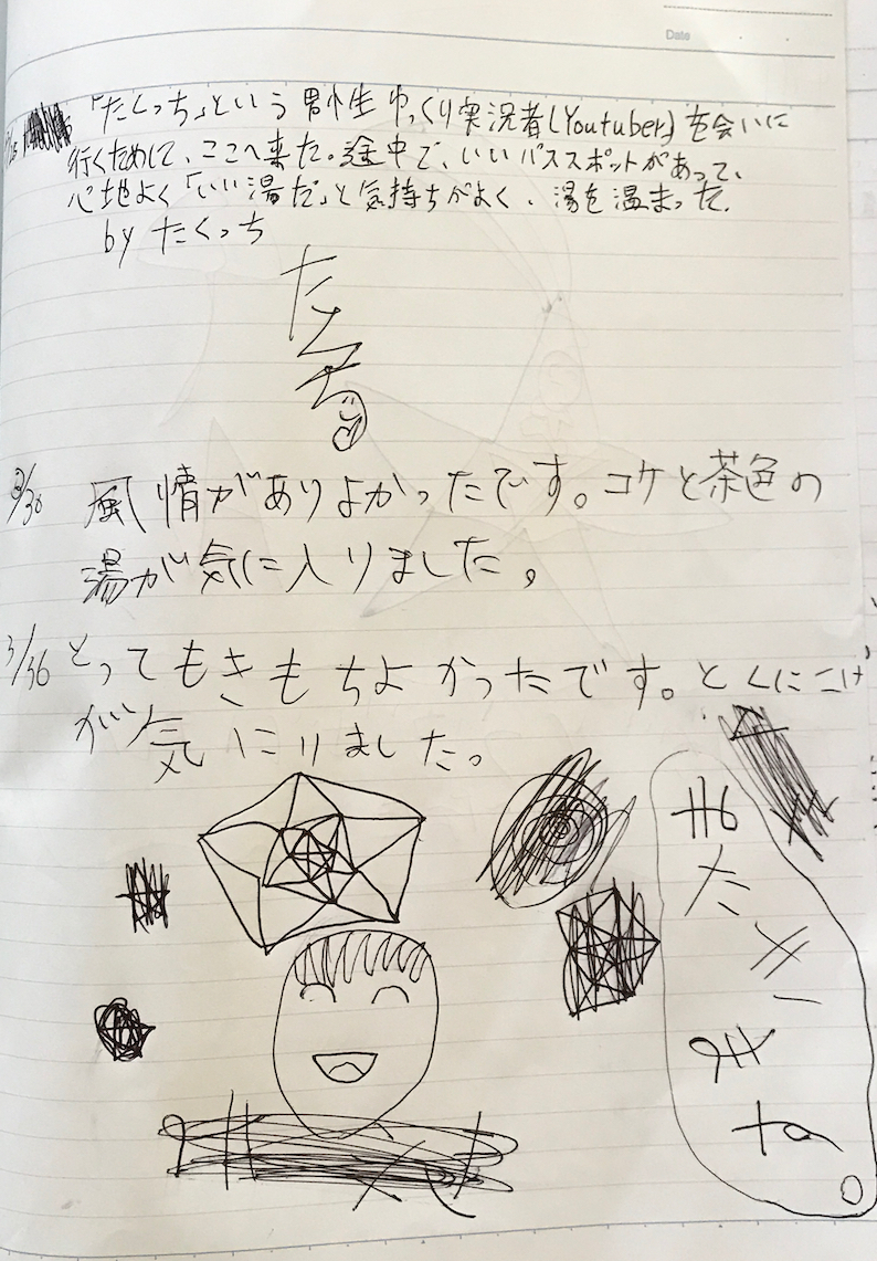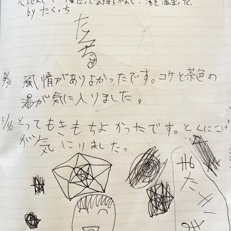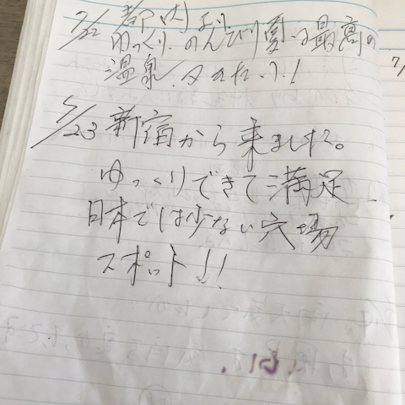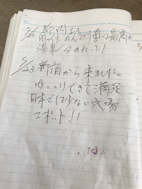 共同浴場には2年前より自由帳をおいています。来場されるたくさんの方に色々書き込みをしていただいておりコメントに一喜一憂しています。